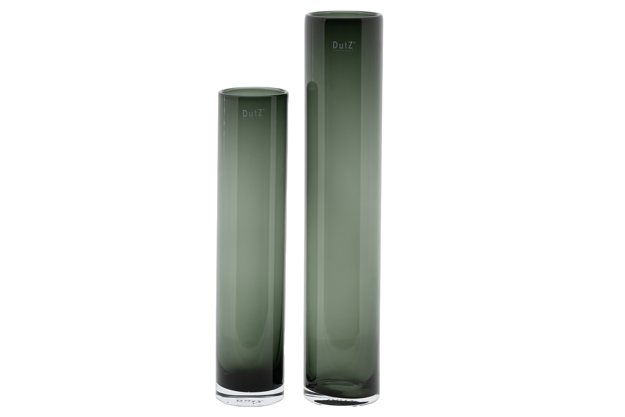 CYLINDERVASE GREYThe mouth-blown vase/cylinder is a classic! Perfect for a few beautiful flowers (with thick stems). This glass object looks impressive on a windowsill, side table, kitchen table, living room table, coffee table, bathroom, bedroom and kitchen.DutZ collection has many glass vases and hurricane lamps in its collection in many colours. This model is a real eyecatcher in the collection and perfect with one or more amaryllisses, berry branches, blossom branches or other thick flowers.This glass vases is trendy and hip and gives every interior a modern twist.The colour of this vase is grey.- Mouthblown- Thick glass- Blown in Europe- Available in two sizesEach DutZ vase is a unique piece! Each article is mouth-blown by glassblowers from our European glassworks. Each product may therefore differ slightly in colour and shape from the pictures. Small deviations such as bubbles and scratches are not defects but a consequence of the traditional glassblowing process. They enrich the product and give it a unique appearance.DutZ= Dare to be distinct!