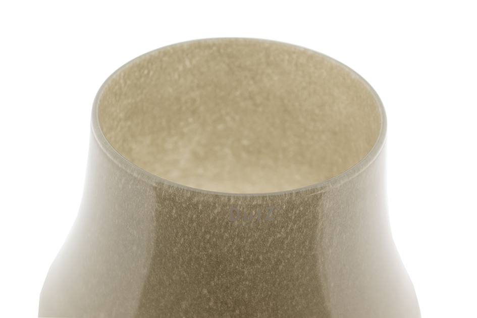 POT RADU TAUPEThe mouth blown vases and pots of DutZ collection are of high quality and not only suitable for flowers or candles but also very decorative with plants. The pots are available in two sizes and fit beautifully on the windowsill, sidetable, kitchen table, living room table, coffee table, bathroom, bedroom and kitchen.DutZ collection has many glass flower pots in the collection in many colours. This model is relatively new in the collection and perfect with an orchid, cactus or succulents.The open shape makes the glass pot also suitable to use as a glass hurricane during warm and cosy evenings. An eye-catcher in every interior.The colour of this pot is taupe.- Mouth blown- Thick glass- Blown in Europe- Available in one sizeEvery DutZ pot is unique! Every glass jar is mouth blown by glassblowers from our European glass factories. Each product can therefore differ slightly in colour and shape from the images. Small deviations such as bubbles and scratches are not defects but a result of the traditional process of traditional glass blowing. They enrich the product and give it a unique appearance.DutZ= Dare to be distinct!