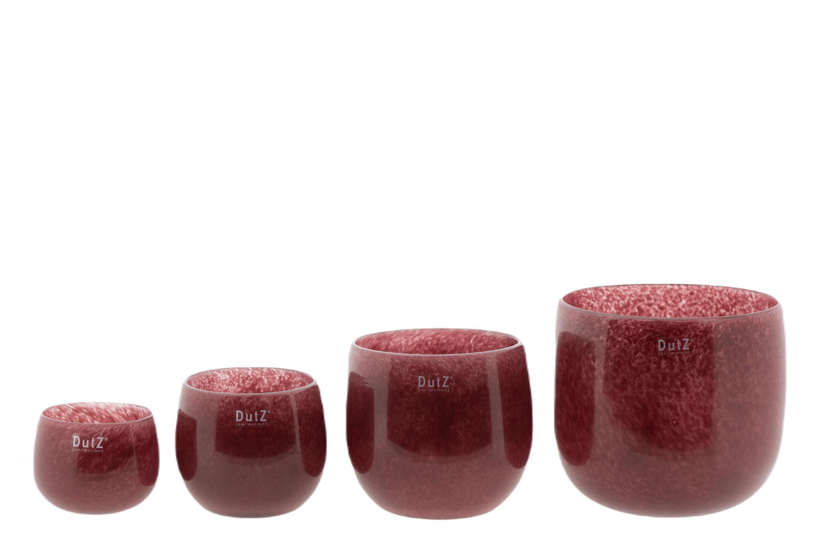 POT RASPBERRYThe mouth blown vases and pots of DutZ collection are of high quality and not only suitable for flowers or candles but also very decorative with plants. The pots are available in several sizes so there is always a suitable size for the windowsill, sidetable, kitchen table, living room table, coffee table, bathroom, bedroom and kitchen.DutZ collection has many glass flower pots in the collection in many colours. This model is a classic in the collection and perfect with an orchid, cactus or succulents.The round open shape makes the glass pot also suitable to use as a glass hurricane during warm and cosy evenings. An eye-catcher in every interior.The colour of this pot is raspberry.- Mouth blown- Thick glass- Blown in Europe- Available in five sizesEvery DutZ pot is unique! Every glass jar is mouth blown by glassblowers from our European glass factories. Each product can therefore differ slightly in colour and shape from the images. Small deviations such as bubbles and scratches are not defects but a result of the traditional process of traditional glass blowing. They enrich the product and give it a unique appearance.DutZ= Dare to be distinct!