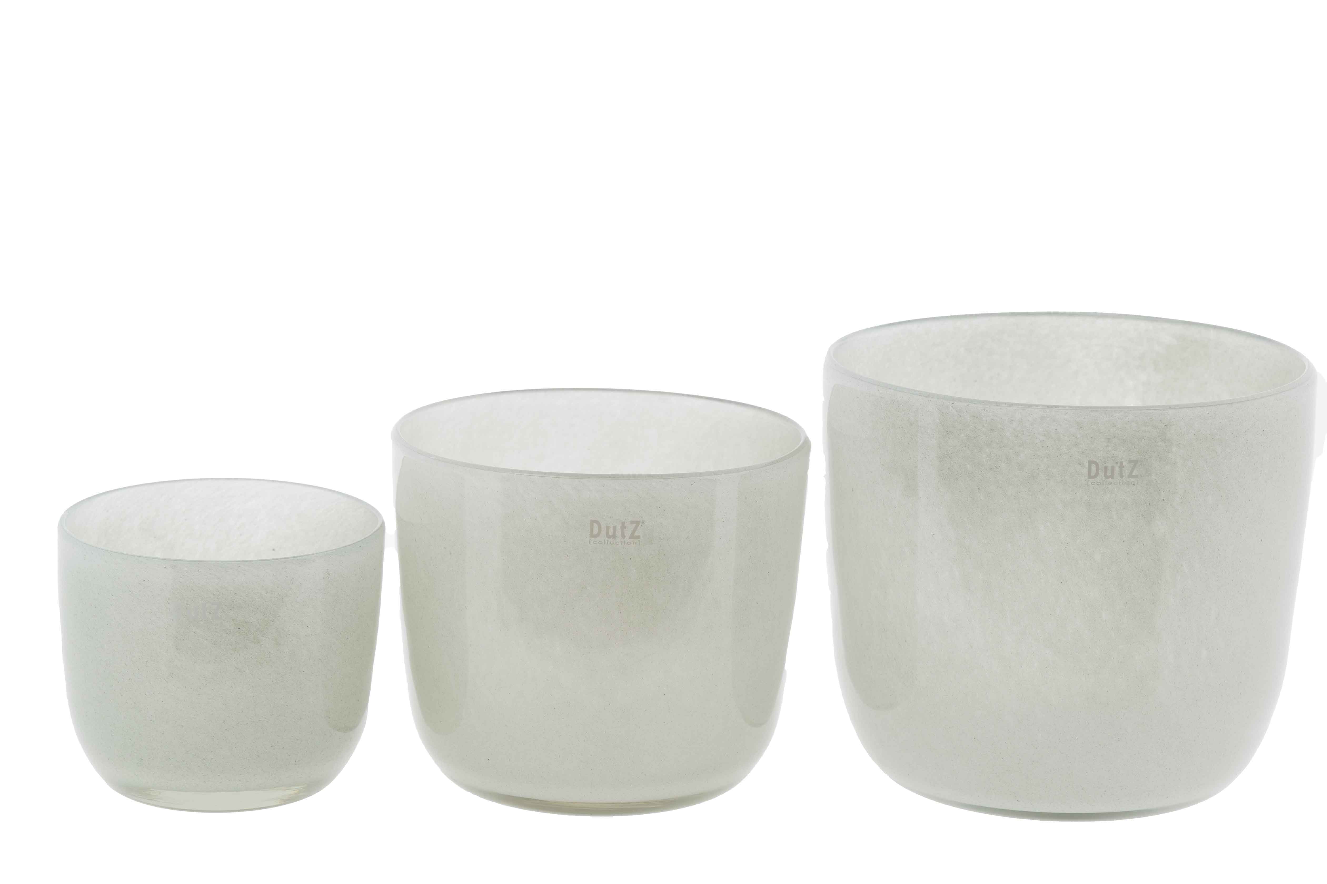 POT WIDE LIGHTGREYThe mouth blown vases and pots of DutZ collection are of high quality and not only suitable for flowers or candles but also very decorative with plants. The pots are available in several sizes so there is always a suitable size for the windowsill, sidetable, kitchen table, living room table, coffee table, bathroom, bedroom and kitchen.DutZ collection has many glass flower pots in the collection in many colours. This model is a classic in the collection and perfect with an orchid, cactus or succulents.The round open shape makes the glass pot also suitable to use as a glass hurricane during warm and cosy evenings. An eye-catcher in every interior.The colour of this pot is lightgrey.- Mouth blown- Thick glass- Blown in Europe- Available in three sizesEvery DutZ pot is unique! Every glass jar is mouth blown by glassblowers from our European glass factories. Each product can therefore differ slightly in colour and shape from the images. Small deviations such as bubbles and scratches are not defects but a result of the traditional process of traditional glass blowing. They enrich the product and give it a unique appearance.DutZ= Dare to be distinct!