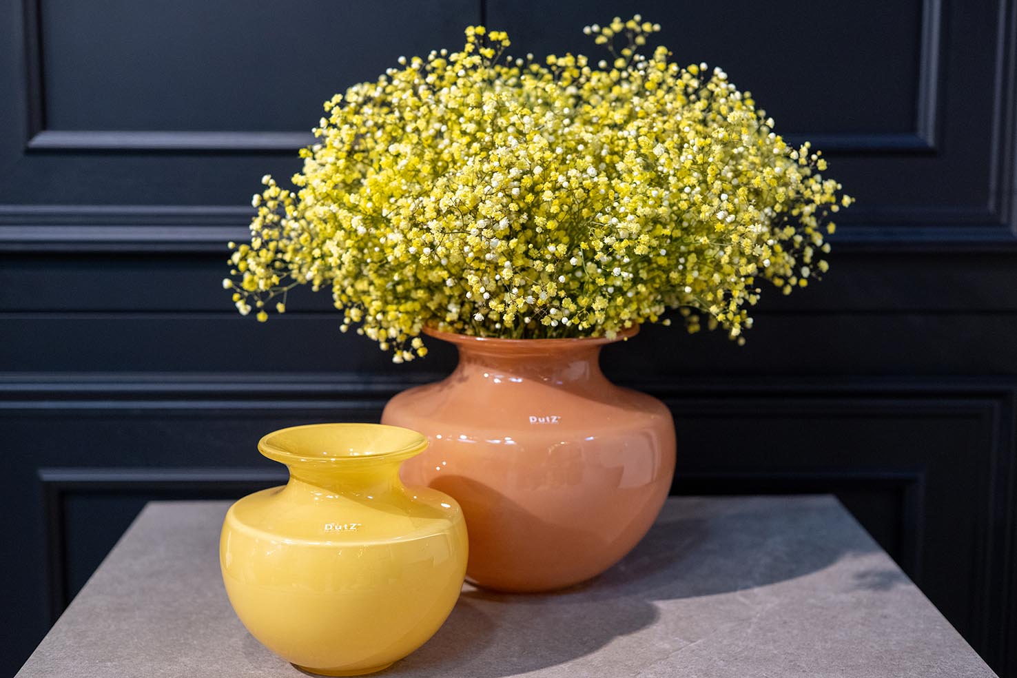 VASE 702 B OCHREThe mouth-blown vases of DutZ collection are of high quality and very beautiful as an object or with some fancy flowers. These vases are extra thick and therefore heavy in weight and give the product an exclusive look.The vases are available in several sizes so there is always a suitable size for the windowsill, side table, kitchen table, living room table, coffee table, bathroom, bedroom and kitchen.DutZ collection has many glass vases in its collection in many colours. This model is an eye-catcher in every interior.The colour of this vase is ochre- Mouth blown- Thick glass- Blown in Europe- Available in two sizesEvery DutZ vase is unique! Every glass vase is mouth blown by glassblowers from our European glass factories. Each product can therefore differ slightly in colour and shape from the images. Small deviations such as bubbles and scratches are not defects but a result of the traditional process of traditional glass blowing. They enrich the product and give it a unique appearance.DutZ= Dare to be distinct!