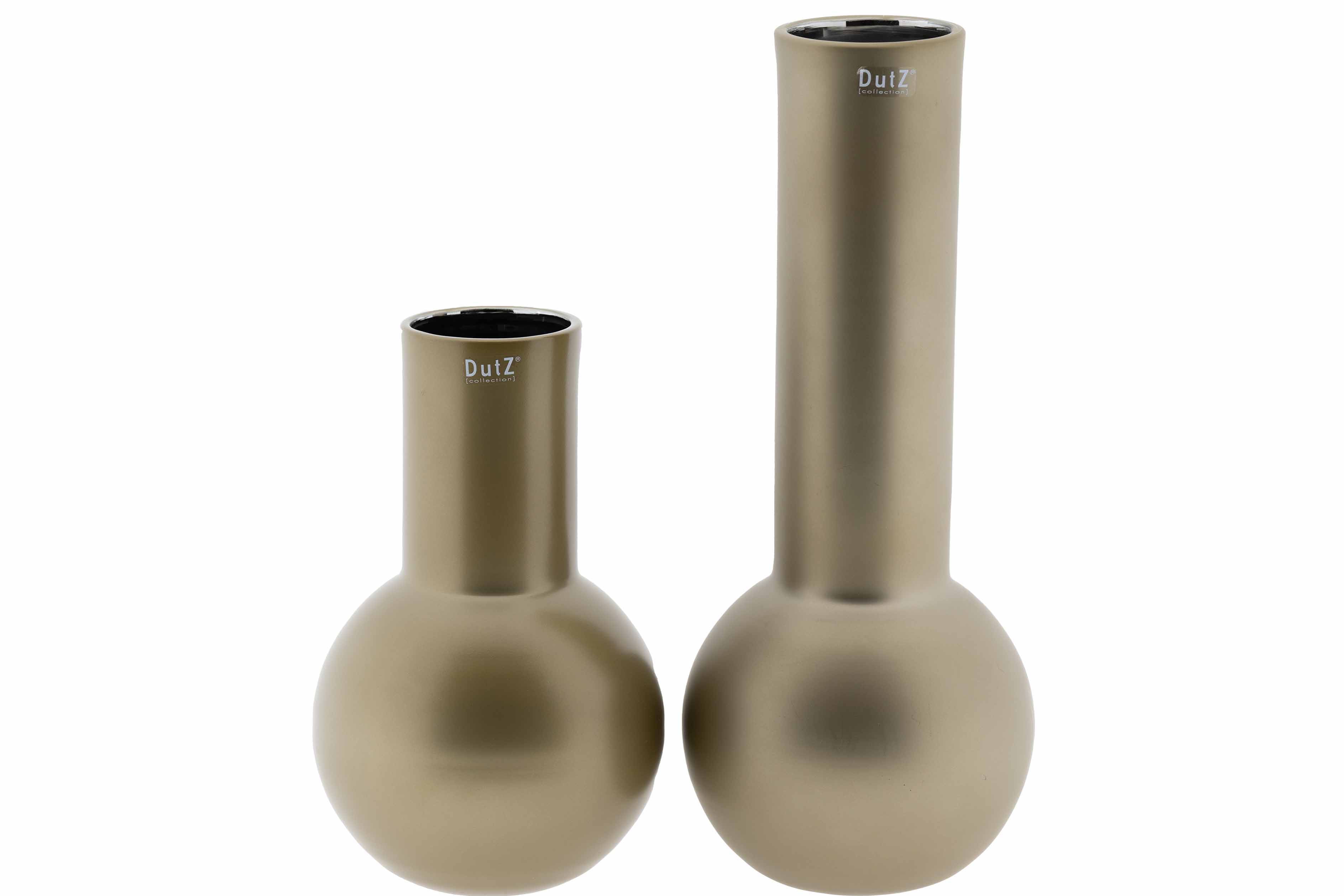 VASE MERYNA MAT GOLDThe mouth blown vases Meryna from DutZ collection are of high quality and perfect for some beautiful flowers (with thick stems). The vases are available in several sizes so there is always a suitable size for the windowsill, sidetable, kitchen table, living room table, coffee table, bathroom, bedroom and kitchen.DutZ collection has many glass vases in the collection in many colours. This model is very trendy and completely fitting in these times. Perfect with a field bouquet or a multitude of loose flowers. A pearl in every interior.The colour of this vase is mat gold.- Mouth blown- Thick glass- Blown in Europe- Available in two sizesEvery DutZ glassvase is unique! Every glass vase is mouth blown by glassblowers from our European glass factories. Each product can therefore differ slightly in colour and shape from the images. Small deviations such as bubbles and scratches are not defects but a result of the traditional process of traditional glass blowing. They enrich the product and give it a unique appearance.DutZ= Dare to be distinct!