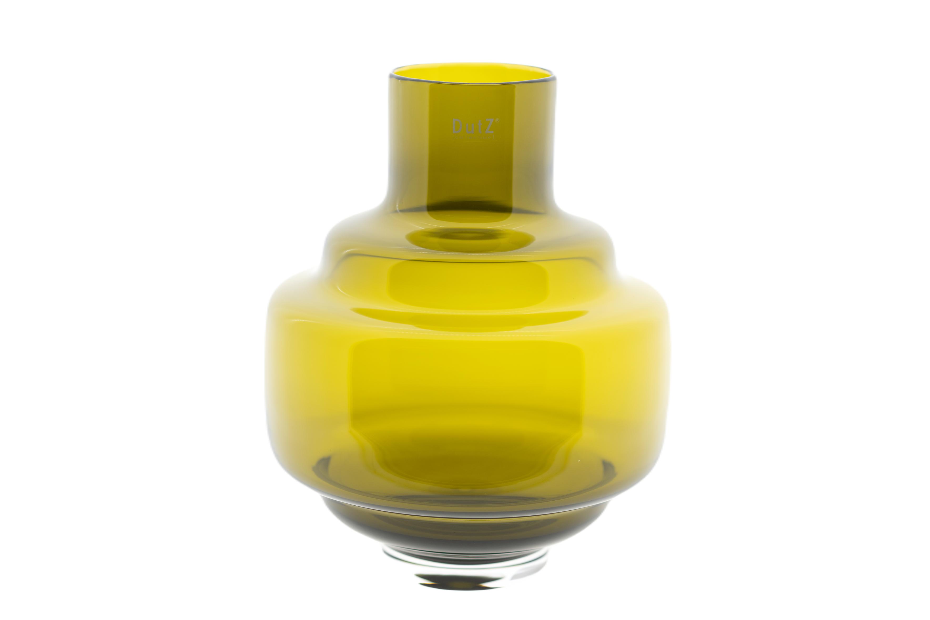 VASE URTII LUXE OLIVEThe mouthblown vases Urtii of DutZ collection are of high quality and perfect for candles, a rich bouquet or some beautiful flowers (with thick stems). The smaller sizes are perfect as glass tea light holders.The glass hurricane lamps and vases are available in multiple sizes so there is always a suitable size for the windowsill, side table, kitchen table, living room table, coffee table, bathroom, bedroom and kitchen.DutZ collection has many glass vases and hurricanes in the collection in many different colours. This model is a real winner in the collection and perfect with thick candles for many cozy evenings. You should also take a look at our luxury candle collection.This glass hurricane light is timeless and will give you years of pleasure. An indispensable product for any interior.The colour of this vase is olive.- Mouthblown- Thick glass- Blown in Europe- Available in one sizeEach DutZ hurricane and tea-light holder is a unique piece! Each article is mouth-blown by glassblowers from our European glassworks. Each product may therefore differ slightly in colour and shape from the pictures. Small deviations such as bubbles and scratches are not defects but a consequence of the traditional glassblowing process. They enrich the product and give it a unique appearance.DutZ= Dare to be distinct!