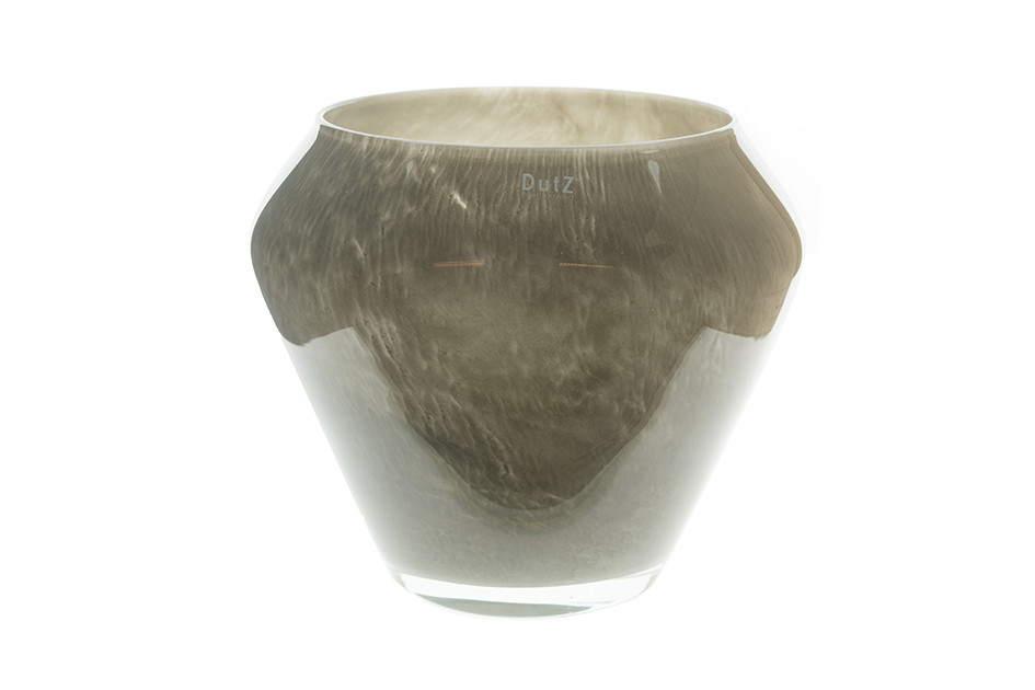 VASE ZORBA TAUPE 2.0The mouth blown vases and pots of DutZ collection are of high quality and not only suitable for flowers or candles but also very decorative with plants. The vases are available in several sizes so there is always a suitable size for the windowsill, sidetable, kitchen table, living room table, coffee table, bathroom, bedroom and kitchen.DutZ collection has many glass flower pots in the collection in many colours. This model is a classic in the collection and perfect with an orchid, cactus or succulents.The round open shape makes the glass pot also suitable to use as a glass hurricane during warm and cosy evenings. An eye-catcher in every interior.The colour of this vase is taupe 2.0.- Mouth blown- Thick glass- Blown in Europe- Available in one sizeEvery DutZ pot is unique! Every glass jar is mouth blown by glassblowers from our European glass factories. Each product can therefore differ slightly in colour and shape from the images. Small deviations such as bubbles and scratches are not defects but a result of the traditional process of traditional glass blowing. They enrich the product and give it a unique appearance.DutZ= Dare to be distinct!